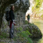 Természetesen mindenki épségben megérkezett a túloldalra és immáron sokkal felfrissültebben folytathattuk utunkat tovább. A környék egyébként elképesztően szép és vadregényes, itt még tényleg a természet az úr, erdőgazdálkodásnak nyoma sincs, a növényzet úgy burjánzik mintha őserdőben lennénk. Az ösvény további részén volt még részünk kisebb sziklamászásban is, meg találtunk egy barlangot, ami utólag kiderült, hogy még annál is hosszabb és nagyobb mint amekkorának képzeltük, annak ellenére, hogy egész mélyen felfedeztük a járatait, amennyire a józan ész még engedte.