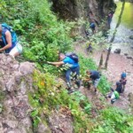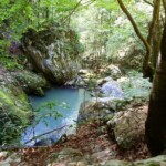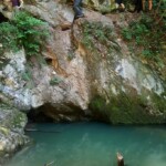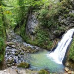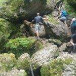 A kanyon ott kezdődik, ahol az út egy éles kanyarral visszafordul és magára hagyná a patakot. Na itt, kell nekünk a patak vonalát tovább követni. A bejáratnál ismét tábla jelzi, hogy ferráta felszerelés javasolt, de valójában nem sok szükség van rá, ráadásul itt is egy elég hosszú részen csak lánc van és nem sodrony. Az első szakaszon egyből könnyű elvéteni, sokan fölfelé indulnak (látszik is hogy arra megy egy ösvény a sok eltévedt lélek miatt), de nem! Kövesd a patakot! Közvetlenül a víz fölött mesterséges lépések, sodrony és láncok segítik a továbbjutást. Később persze lesznek olyan részek, ahol föl kell mászni magasra, aztán visszaereszkedni, de mindenhol jól láthatóan a drótokat kell követni.