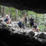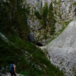 A barlangon egyébként át lehet menni, az északi „udvarba”, de ezt inkább kihagytuk, mert az egy technikásabb emelkedő és szerettük volna szárazon megúszni a napot. Így a törmeléklejtőn sétáltunk át az óriási déli barlangbejárathoz, majd a meredek sziklás emelkedőn vissza a sárga jelzésre.